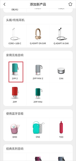 2、接着,从列表中找到并选择你要绑定的蓝牙音箱型号,比如这里以zipp 2为例。