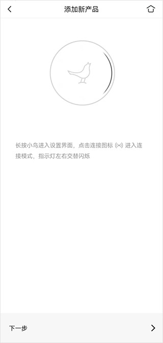 3、长按音箱电源键启动设备,待触摸界面点亮后,再次长按小鸟按钮进入设备设置页面,点击连接图标开启连接模式,此时指示灯将开始交替闪烁。