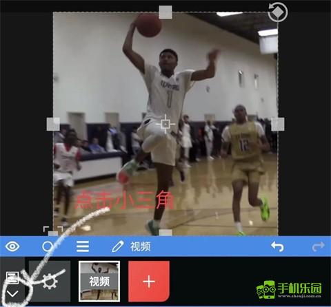 5、选择好素材过后,点击左下角小三角;