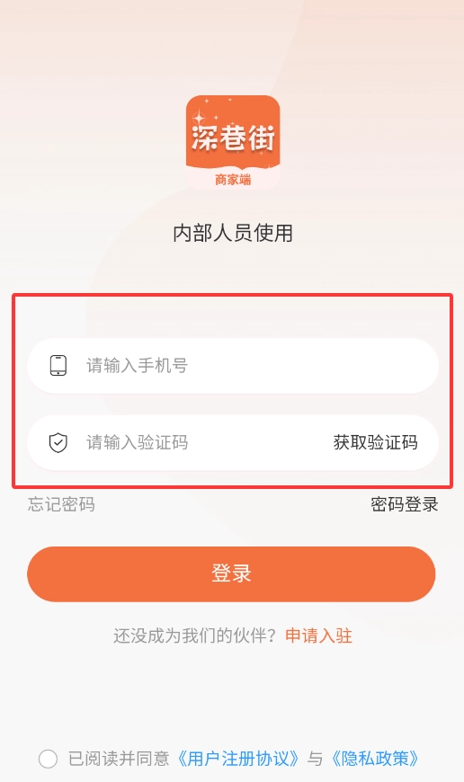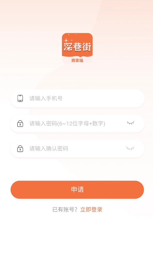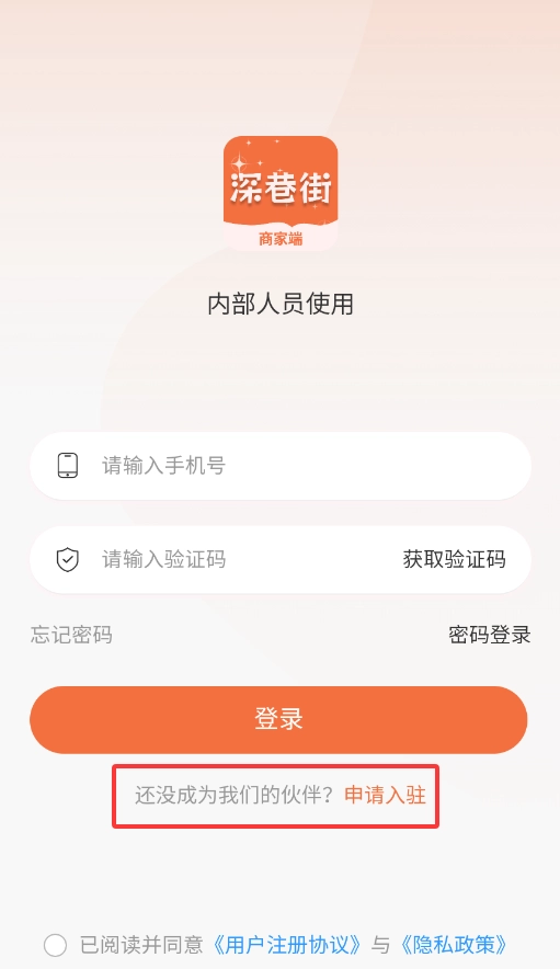 登录账号完成入驻:申请提交后,回到登录页面,用刚才填写的手机号码和密码登录,就能成功入驻深巷铺子。