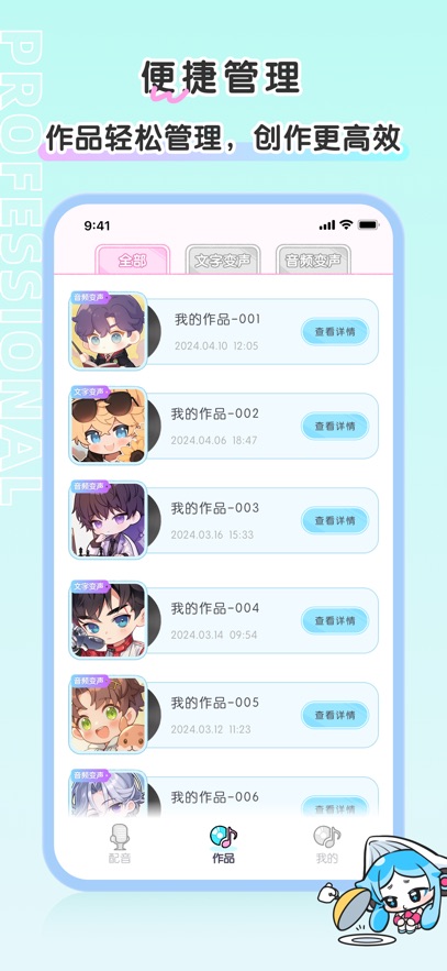 你可以在音库中浏览各类声音类型,按照自身需求挑选合适的,试听之后就能确定下来。