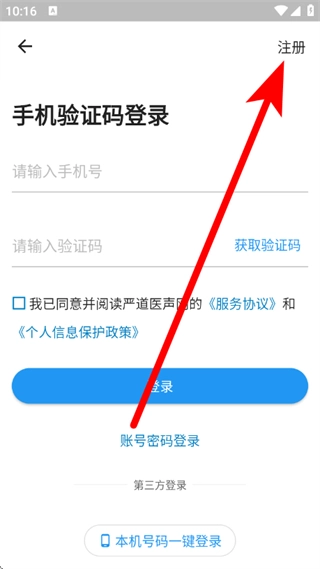 在登录页面,点击选择注册,进入快速注册页面