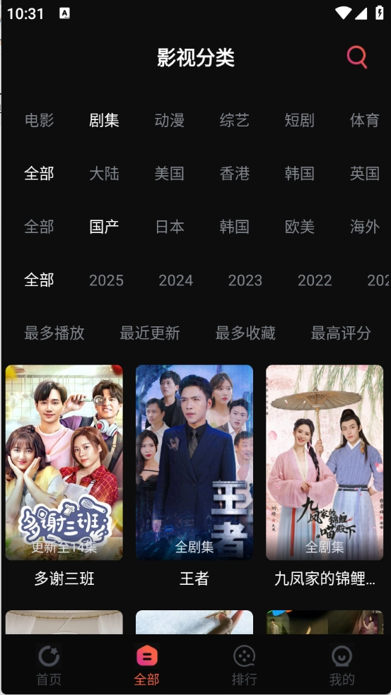 “全部”板块有电视剧、动漫以及综艺等类型。