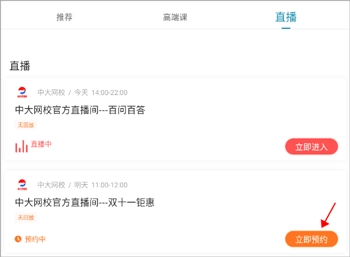 接着点击直播右侧的“立即预约”按钮就可以了,到了预约时间软件会自动提醒你。