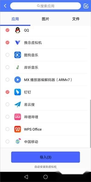 1、若用户想导入真机内的游戏,可在启动虚拟机后,打开虚拟机里的文件中转功能。