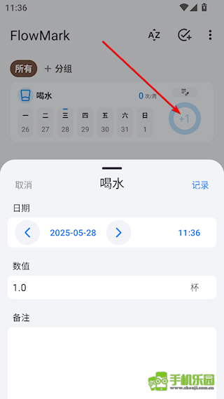 4、在习惯列表中,点击习惯右侧的+1,添加打卡记录