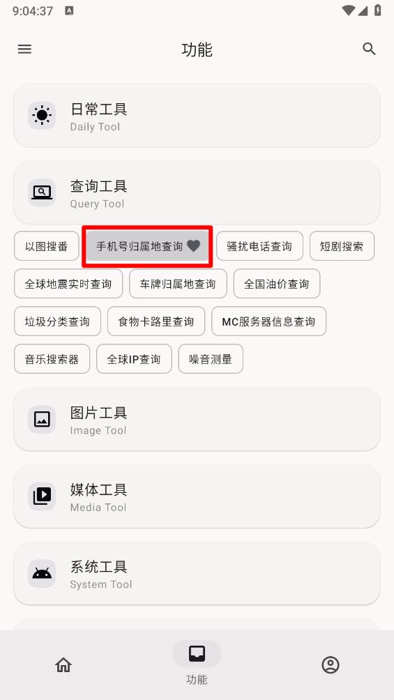 3、进入"功能"页面,选择所需收藏的功能板块。