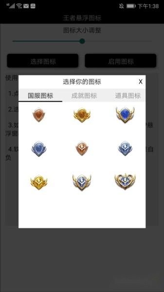 3、包括国服图标、成就图标、道具图标、段位图标、关系图标、战队图标等各种各样的图标类型和样式,用户和根据喜好选择,