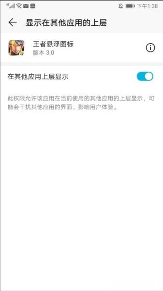 4、选择完相应的图标后,系统会提示需要开启悬浮窗权限,我们选择【前往设置】选项,