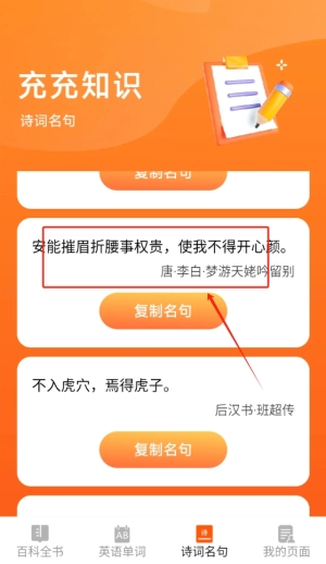 我们支持经典名句的复制分享功能,这样用户就能轻松地把自己钟爱的作品分享给好友了。