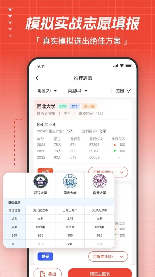报考模拟功能,帮助用户练习志愿填报顺序。