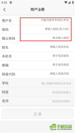 3、在用户注册页面,输入用户名、密码、确认密码。