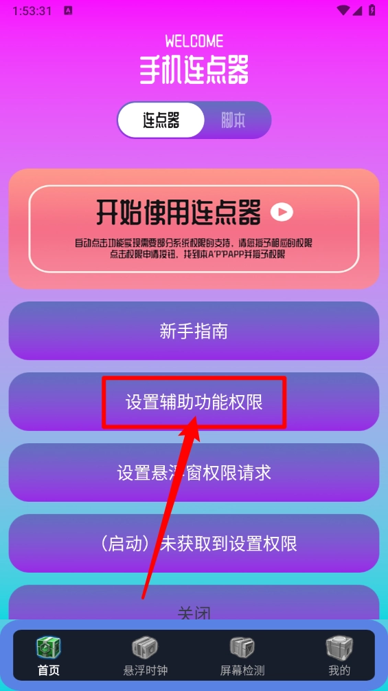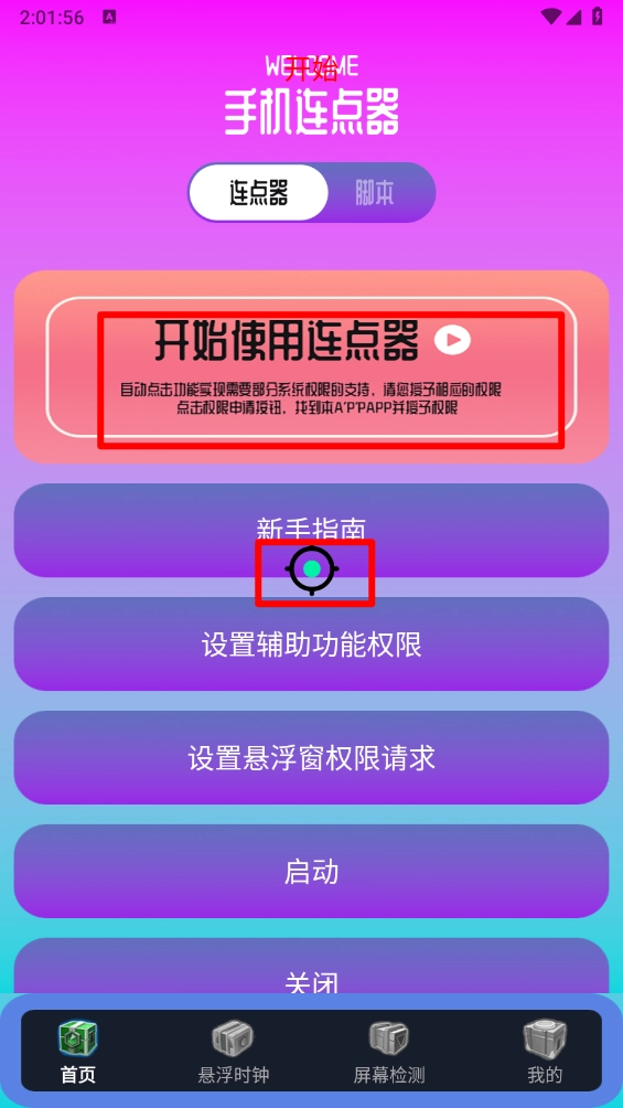 8、回到主页后,点击“开始使用连点器”按钮,就能启动点击操作了。