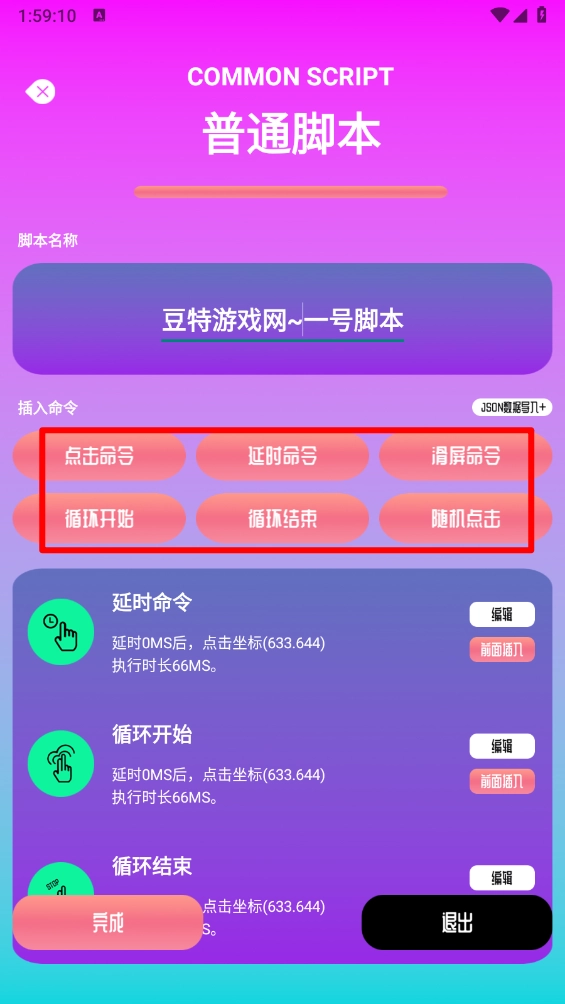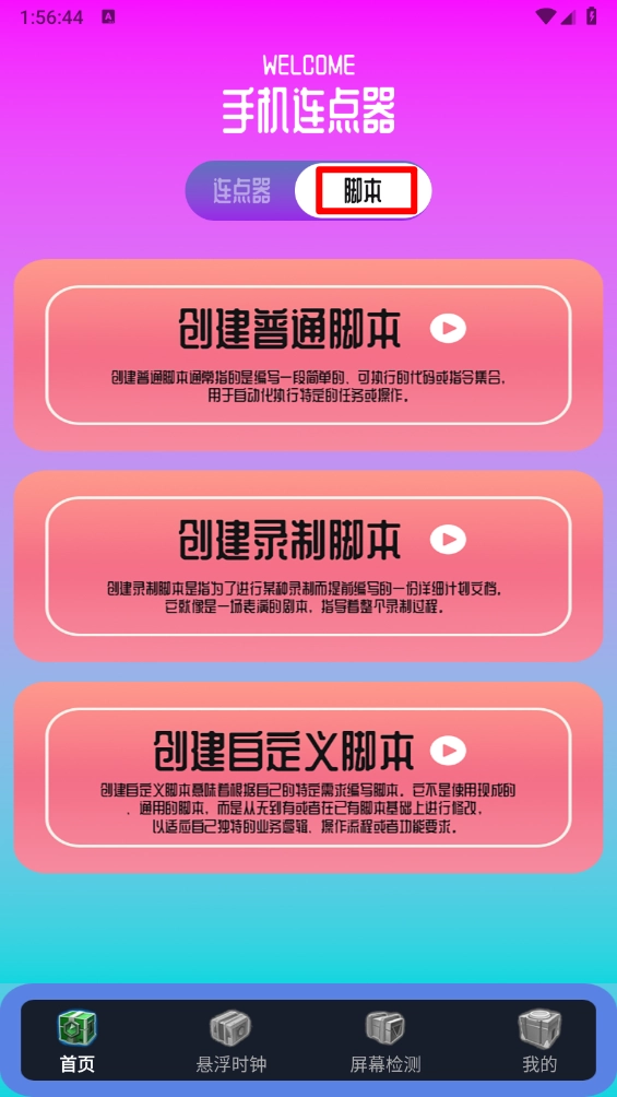 6、完成后切换到“脚本”页面,依据实际需求创建点击脚本。