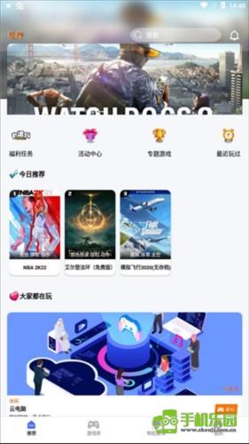 1、在本站安装并打开易点玩云游戏后,进入软件首页,用户能看到福利任务、活动中心、专题游戏等快捷入口。