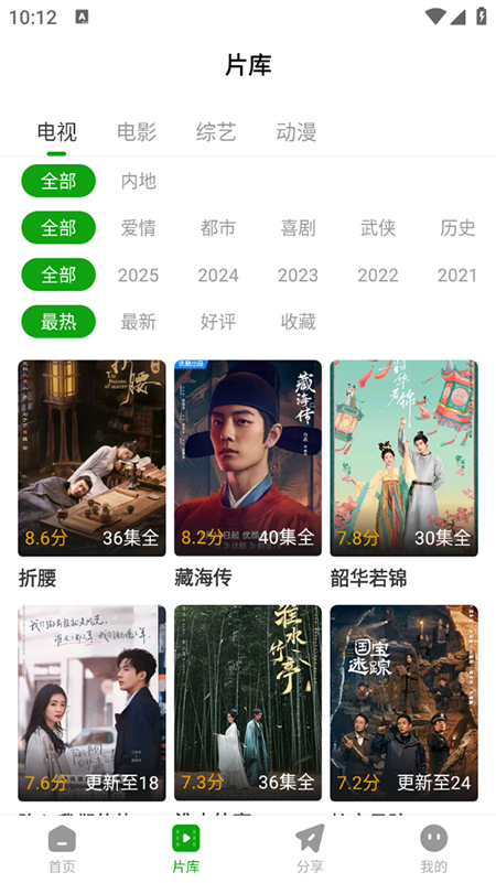 3、片库按题材、年份和热度归类。