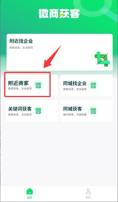 进入功能主页后,点击“附近商家”选项,系统会呈现您周边的商户列表。