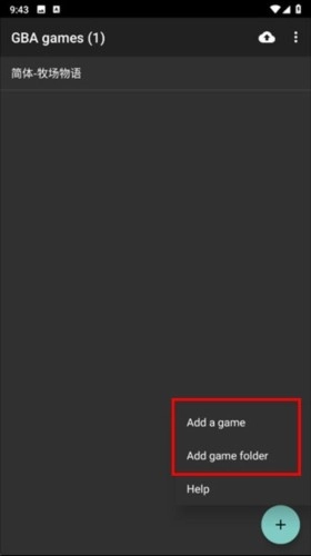 在My Boy模拟器中运行载入游戏非常的简单,首先我们需要先将gb/gbc/gba的三种格式的游戏rom文件导入到手机中,接着我们运行模拟器,点击右下角的【+】图标,选择【Add a game】导入单个游戏rom,你也可以选择【Add game folder】来直接批量导入游戏文件夹。