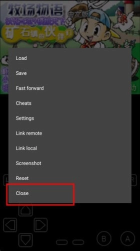 最后在弹出的菜单中,点击【Close】即可关闭游戏回到模拟器的游戏列表页面。