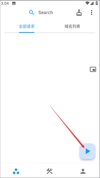 1、打开后进入抓包页面,点击右下角的启动按钮