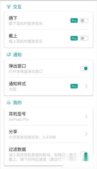 4、podstool这款软件还有像iphone一样的入耳监测等功能,但部分需要付费。