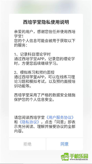 1、一键开启西培学堂,阅读隐私使用说明,点击同意。