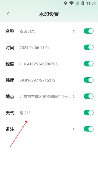 根据实际使用场景,可添加名称、时间、经纬度、天气、备注等信息,且能自由开关这些内容的展示状态。
