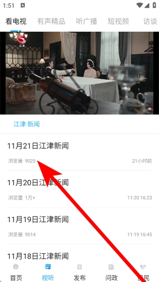 在视听页面,挑选你想观看的新闻,然后进入该新闻的播放页面。