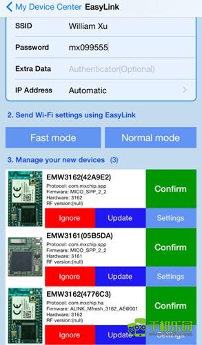 5、将无线网络设置参数快速分享到智能产品,使模块快速加入本地Wi-Fi网络。
