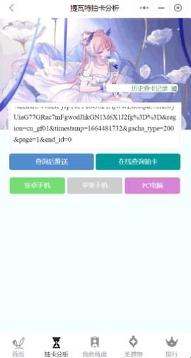 返回小程序,输入框内粘贴网址即可完成抽卡分析: