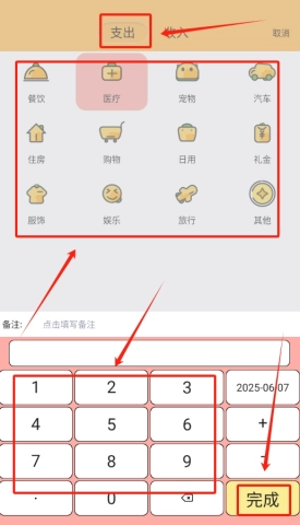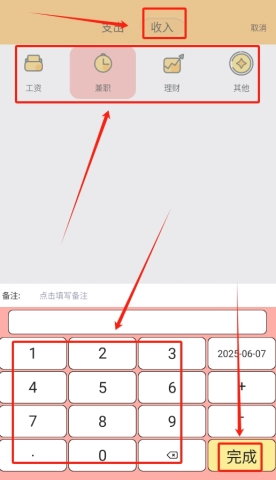 同样的逻辑,记录收入时也是这样操作:挑选对应的收入类别,填写好具体金额,最后点击保存按钮,就能简单便捷地把你的收入去向记录下来了。