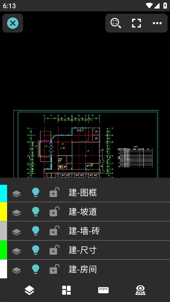 4、图层:显示DWG文件所有图层,可开启或关闭选定图层。