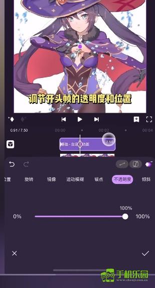 3、我们首先要确定开头帧的透明度与位置,这样能让开头部分的过渡更流畅自然。