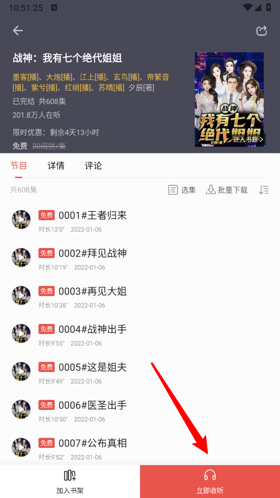②呼出菜单后,点击右下角的"听"字标识即可听书,并跳转至播放界面;