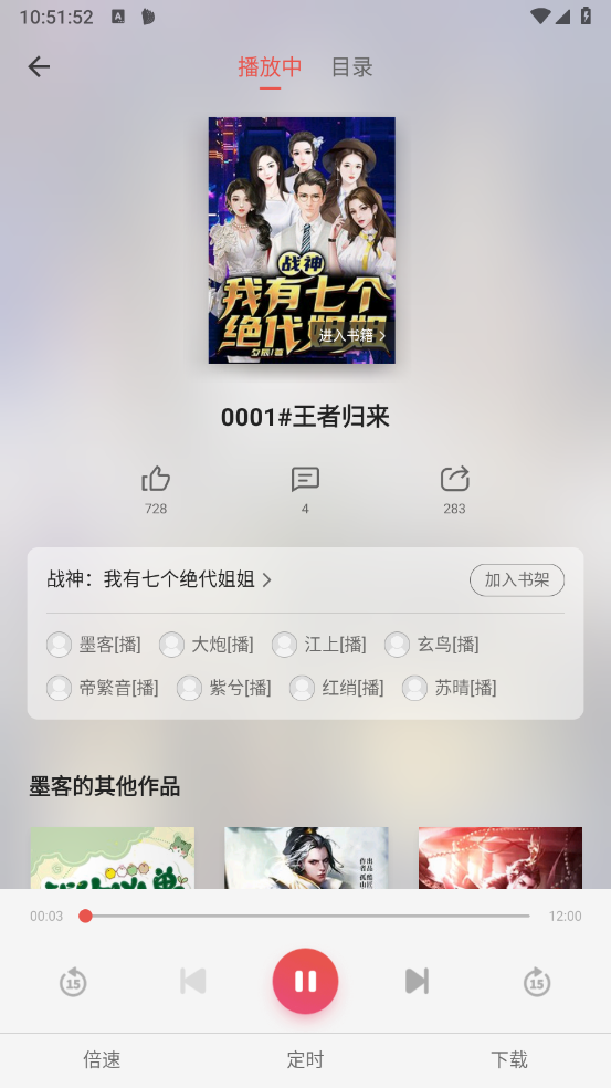 5、在听书板块即可开启听书体验,支持设置倍数、定时听书。