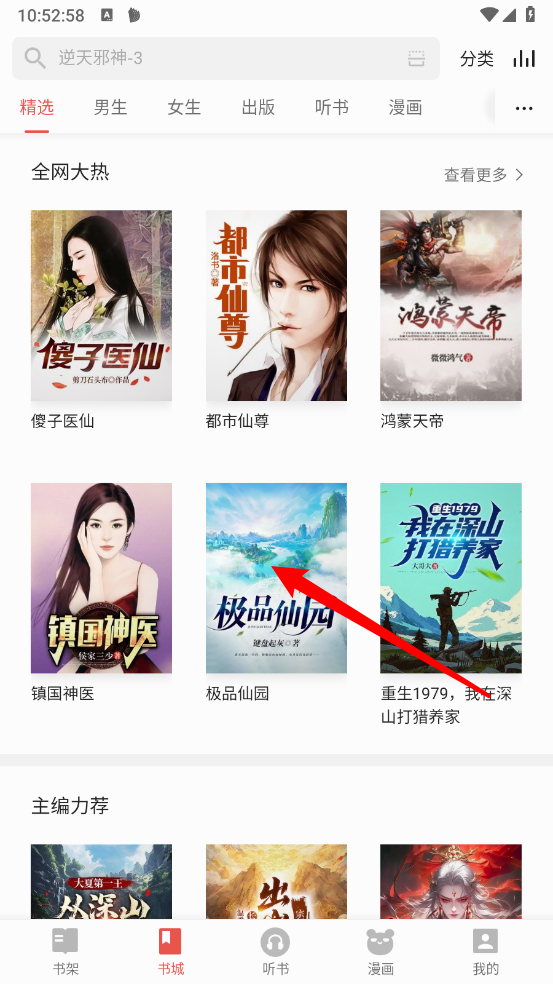 1、在连阅免费小说的书城中挑选想要加入的小说。