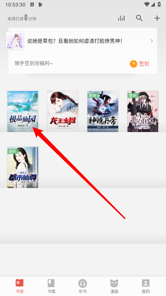 ①打开您要语音朗读的书籍,在阅读界面轻点屏幕中间;