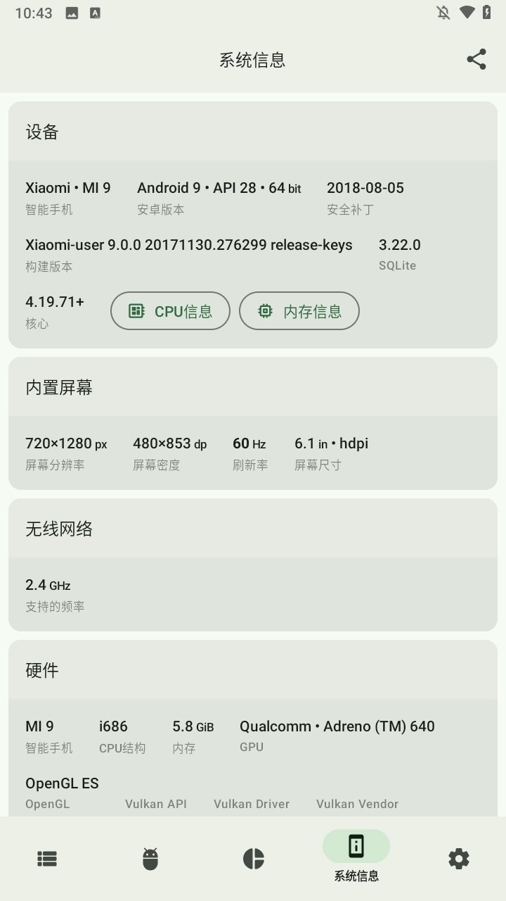 新增系统信息查询,涵盖屏幕、CPU、内存等详情。