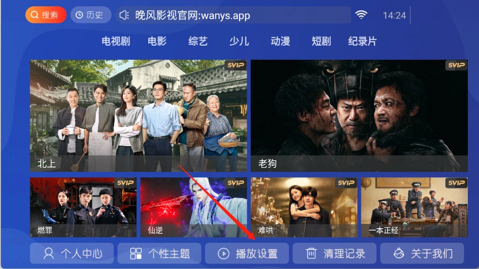 1、打开首页后,找到并点击“播放设置”选项。