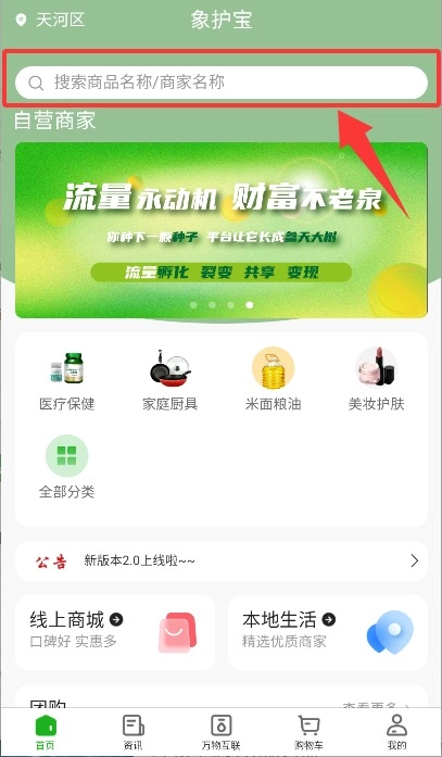 您可以在首页顶部的搜索栏里输入想要找的商品具体名称,然后点击右边的搜索图标来查询商品。