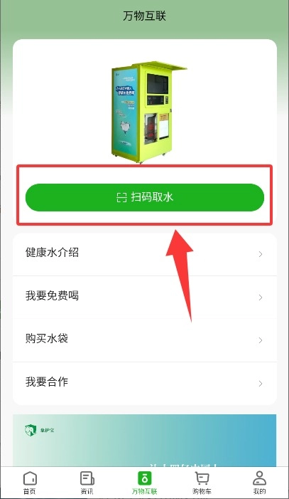 进入线下服务页面后,找到并点击“扫码取水”选项,接着将设备上的二维码对准扫描,就能完成取水操作了。