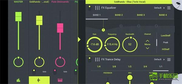可进行乐曲的音量最大化。包括混响,模拟室,大厅和峡谷等音效环境!延迟产生回声,与节拍同步。EQ塑造低音,中,高音频率。同事还有两个超速类型的放大器模拟器,过滤与共振和可选的倾斜控制。