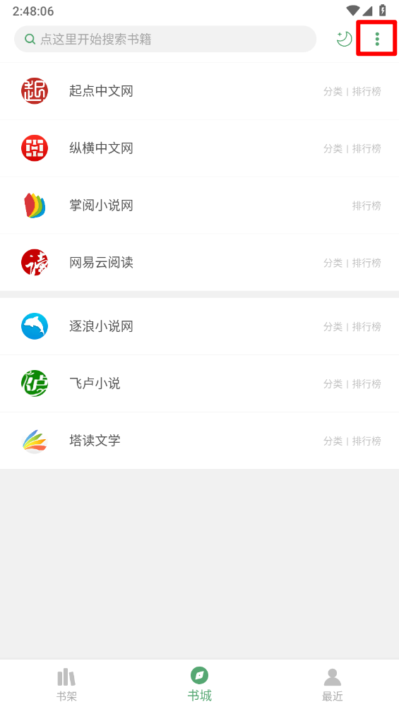 1、打开搜书大师,进入书城页面,选择喜欢的书源。