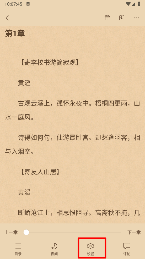 4、然后进入阅读界面点击中间区域呼出菜单,点击"设置"。