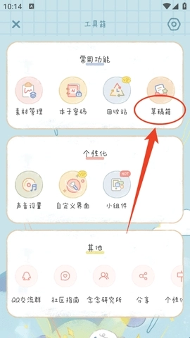 然后我们在工具箱中就能找到“草稿箱”了。