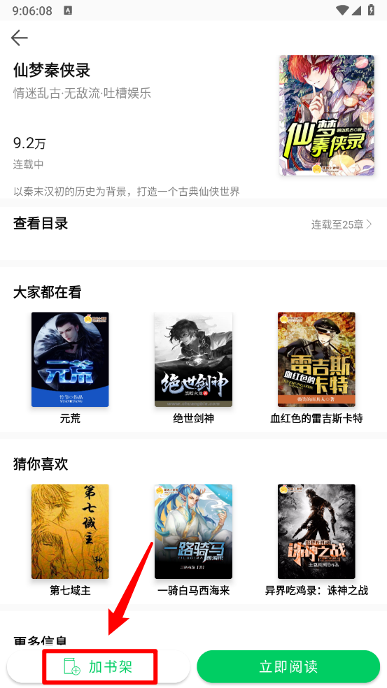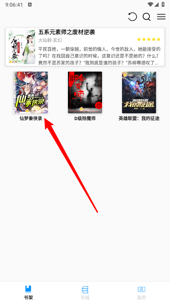 4、返回主页后进入书架板块,如图所示,就能查看已加入的目标小说。