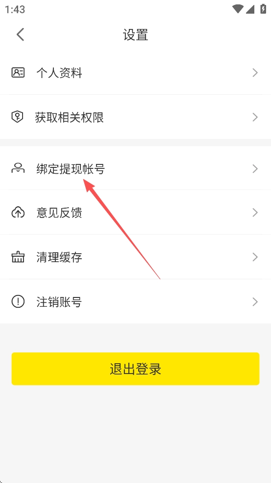 在设置界面里,找到并点击【绑定提现账号】的功能选项,即可进入账号绑定的操作页面。