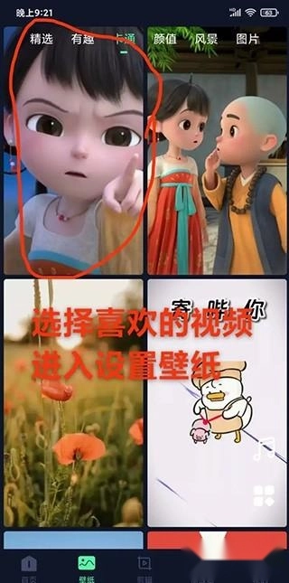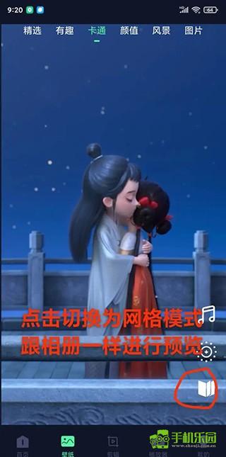5、要是你希望像在相册里挑选视频那样选择壁纸,就可以切换成网格模式。