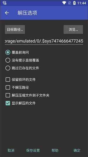 点击压缩按钮旁边的按键来执行解压操作,进入解压界面后,设置好解压路径并根据你的需求开始解压流程。