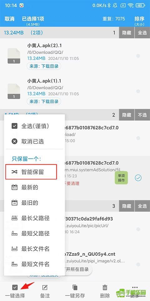 手机使用久了,会产生非常多的重复文件。同样,在清理前,确保重要文件是已做好了“不要清理”的备注,以防误删。(玩游戏的用户,如果存放游戏数据的目录在存储的文件中,建议也备注为“不要清理”,以免误删导致游戏异常)